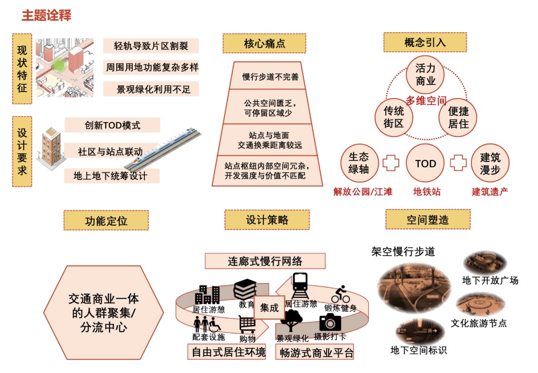 以上这些问题,基于武汉城市发展、片区协调融合、慢行交通衔接,提出搭建文化特色节点、导向标识、片区特色规划、集约功能性组织以及丰富趣味步道等策略。