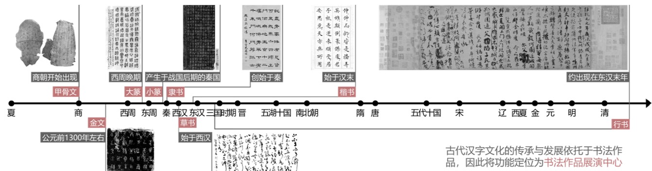 而无形的语言依托有形的汉字进行传承,故此次设计中我们选取汉字这种“有形”的载体,来作为空间抽象概念的原型,并以此为依据进行“书法展览艺术小馆”的设计。